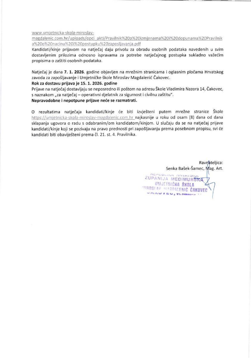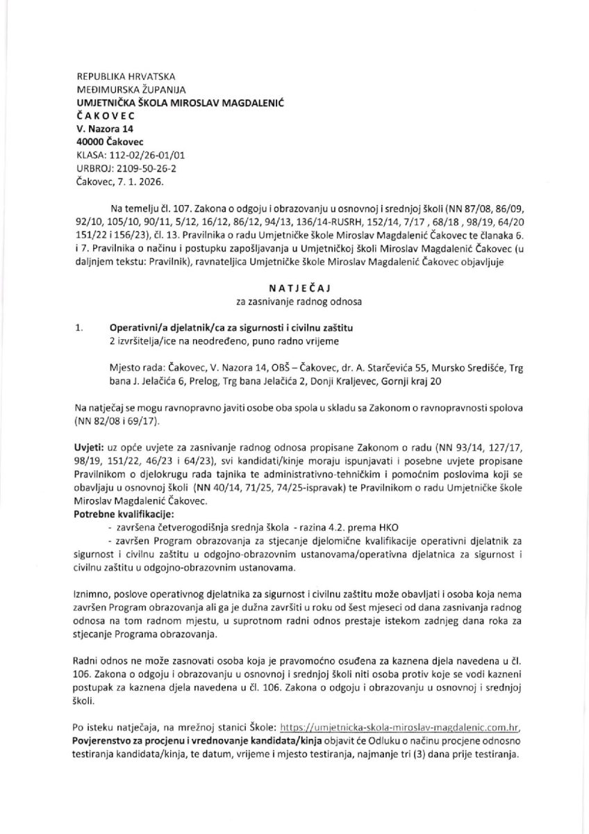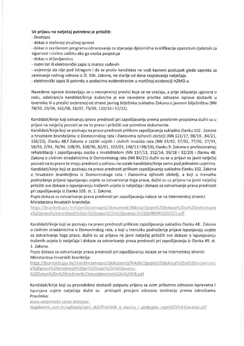 Natječaj za radno mjesto operativnog djelatnika za sigurnost i civilnu zaštitu