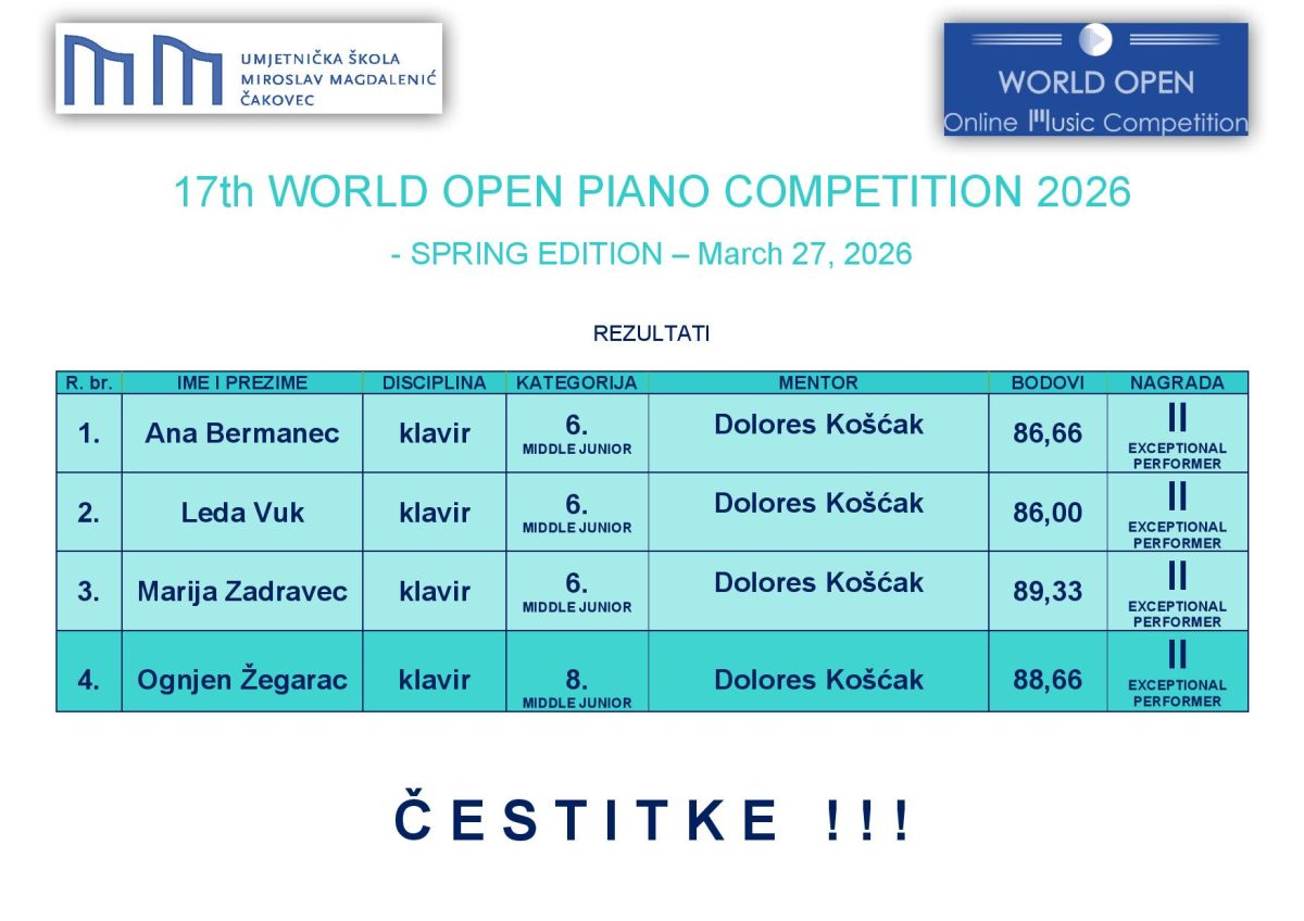 Rezultati – 17th. WORLD OPEN PIANO COMPETITION 2026.