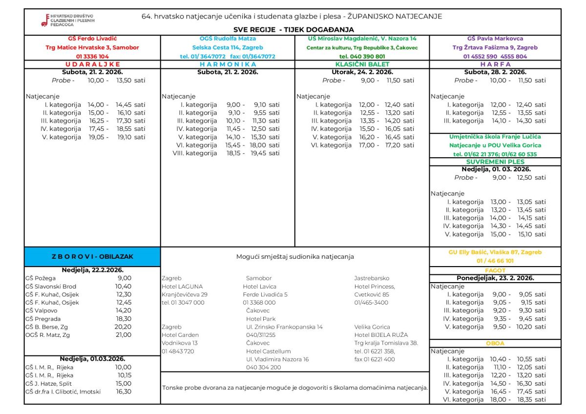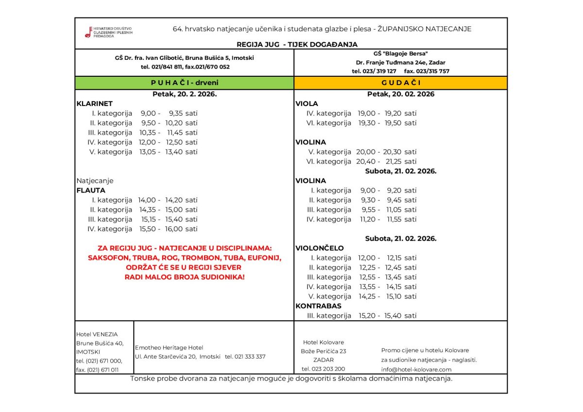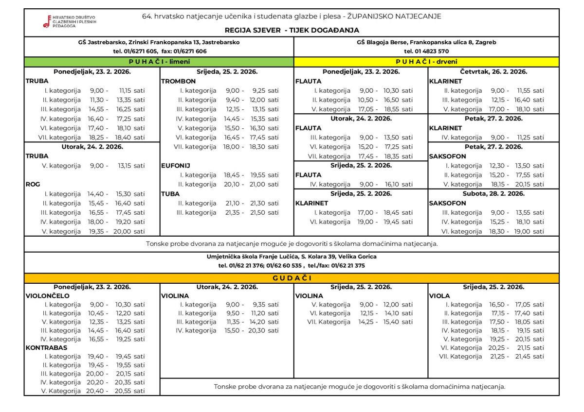 Tijek događanja – 64. hrvatsko natjecanje učenika i studenata glazbe i plesa – Županijsko natjecanje